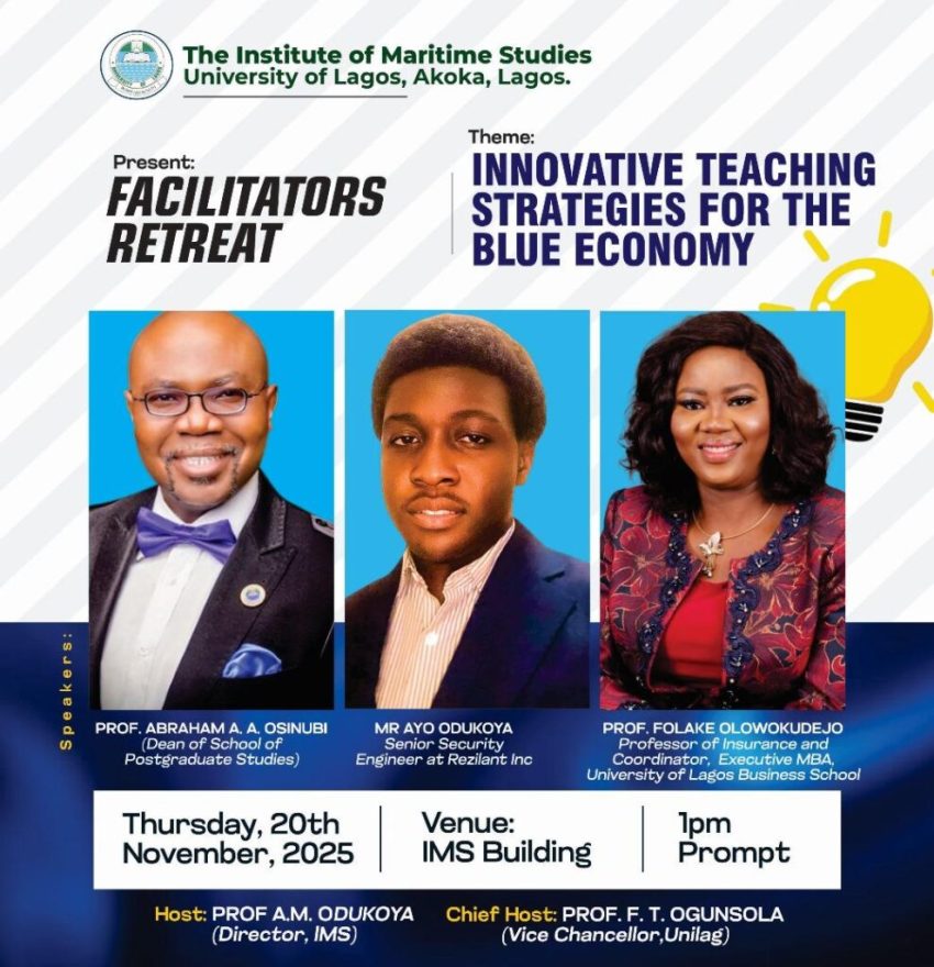 The Facilitators’ Retreat of the Institute of Maritime Studies (IMS), University of Lagos (UNILAG) will hold on Thursday, November 20, 2025 at 1:00 p.m. at the IMS Building, UNILAG Main Campus, Akoka.
