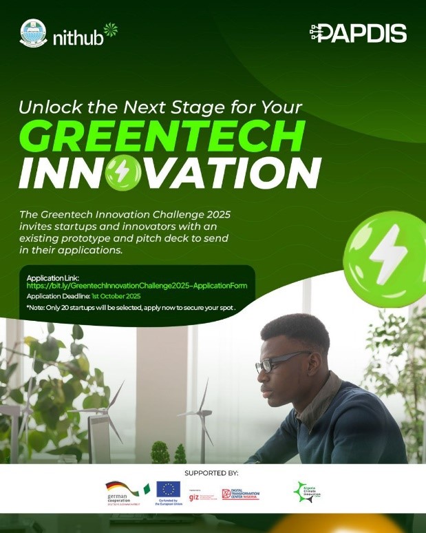 The National Information Technology Development Agency (NITDA) Information Technology Hub (NITHUB), University of Lagos, hereby announces the opening of applications for the Greentech Innovation Challenge.