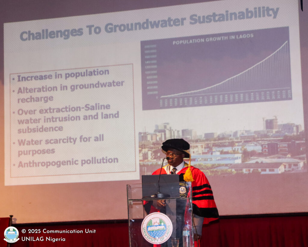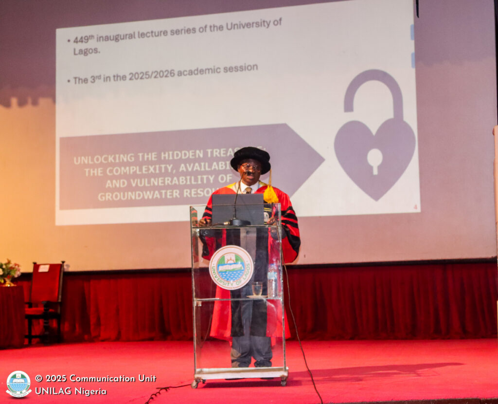 The inaugural lecture ( https://ir.unilag.edu.ng/items/bb09ce21-5c11-4f05-a655-4b4df280fc2a), the 3rd in the 2025/2026 Academic Session, was an eye-opener for attendees as they discovered the importance of underground water and its role. Addressing the audience of academics, dignitaries, staff, and students, Professor Longe described groundwater as “a crucial yet invisible natural resource”.