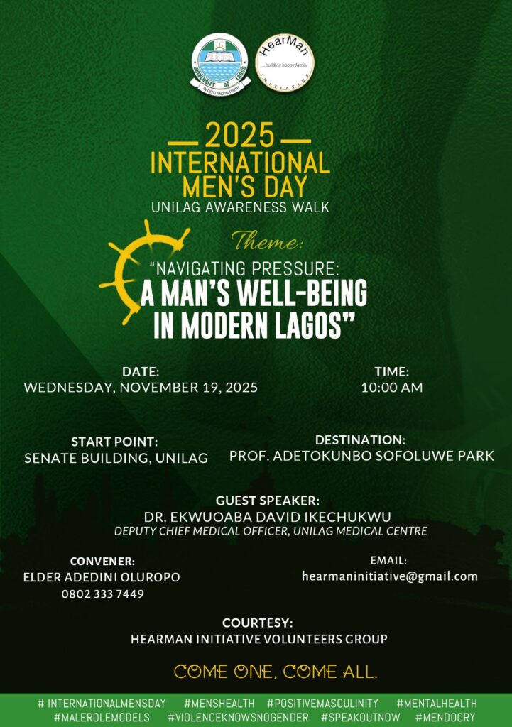 The University of Lagos (UNILAG) community will join the rest of the world on Wednesday, November 19, 2025, to mark the 2025 International Men’s Day Rally.