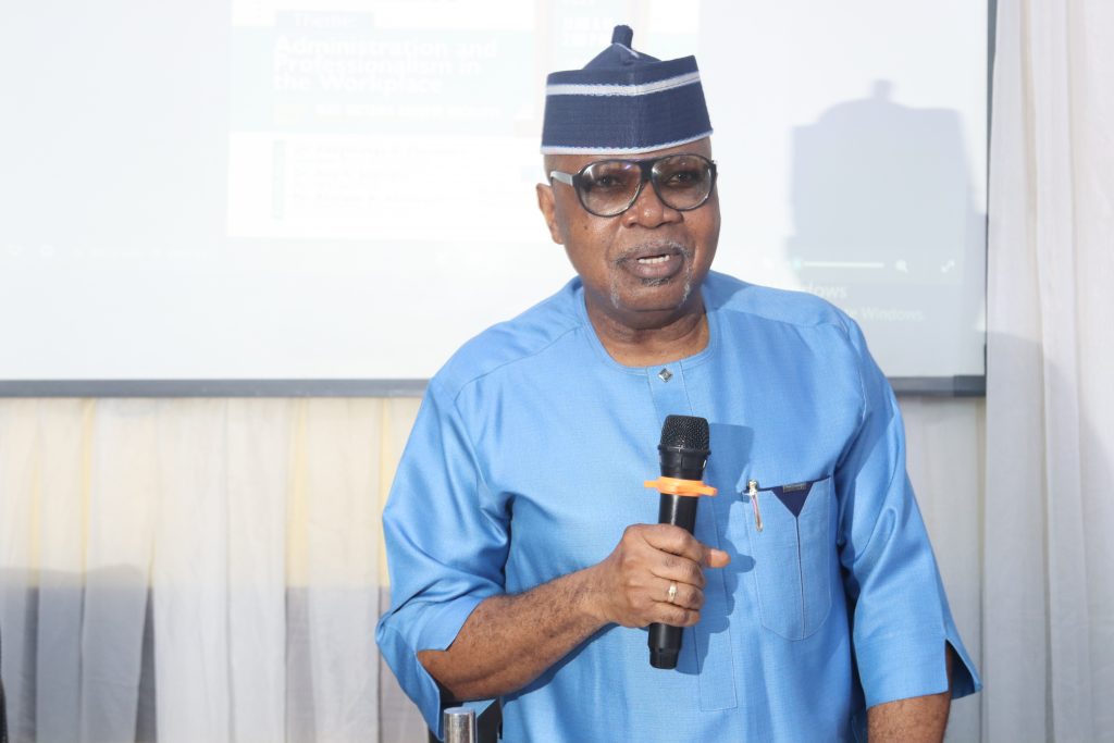The workshop, themed Administration and Professionalism in the Workplace, was formally declared open by the University Registrar and Secretary to Council, Mrs. Victoria Abosede Wickliffe.